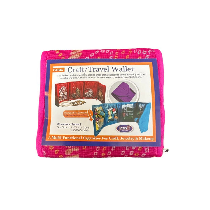 - THE CRAFT STORAGE wallet is a compact and efficient solution for organizing various small items, ranging from sewing essentials to jewelry. Measuring approximately 11.4 cm x 13.3 cm when closed and extending to 11.4 cm x 50.8 cm when open, this wallet is designed with practicality and convenience in mind. It features four distinct compartments, capable of securely holding crafting accessories, credit cards, ID cards, receipts, stamps, tickets, and other minor items.