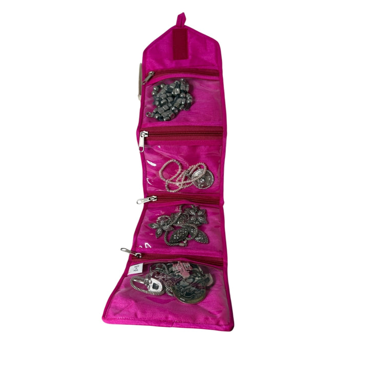 - EACH POCKET is optimally sized to fit bracelets and necklaces, keeping them organized and safe while traveling. Additionally, the wallet can be used as a makeup bag or cosmetic makeup bag, adding further versatility to its uses. It also serves as a handbag organizer, jewelry organizer, and cosmetic organizer, making it essential for anyone needing to keep small items systematically organized while on the go.