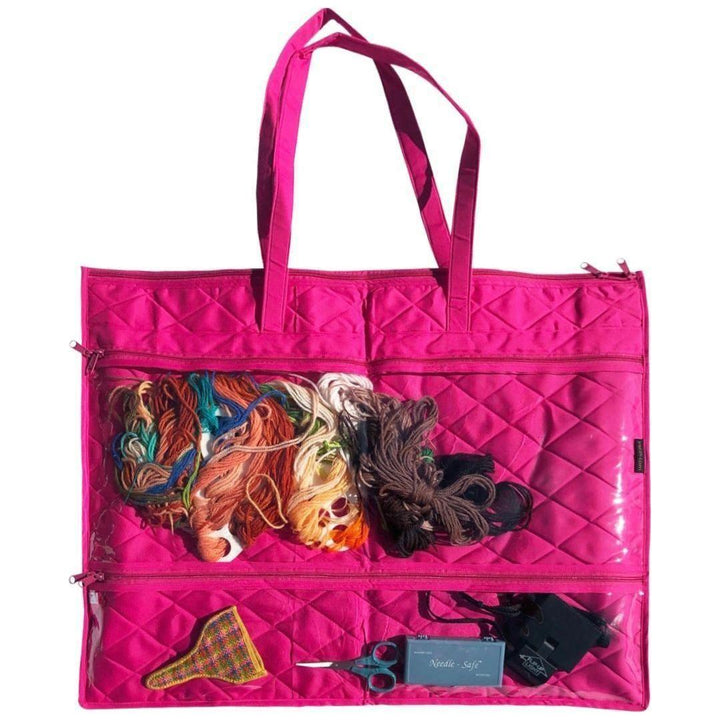 This very large bag has plenty of space for your needlework frames, stretcher bars, Q-Snaps, hoops, charts, pattern books, thread or yarn. There are additional zippered compartments for craft supplies and sewing notions, and a convenient carrying handle.