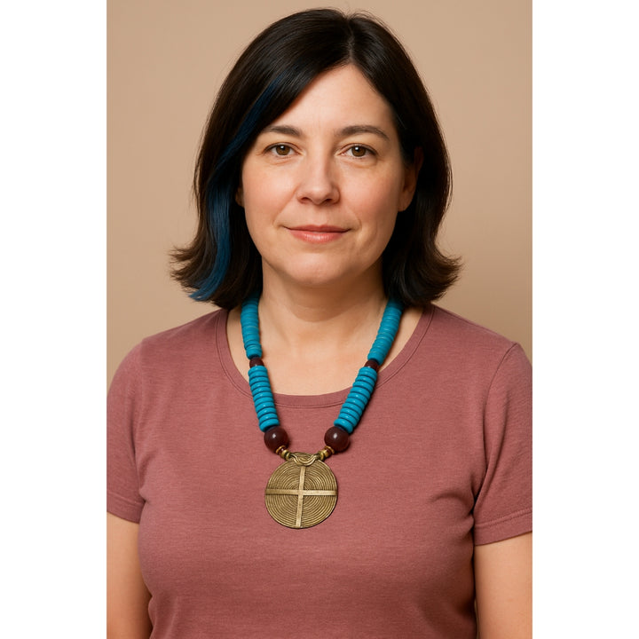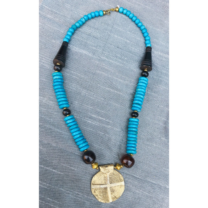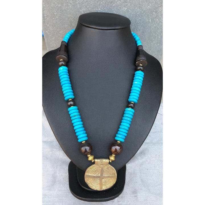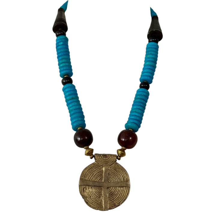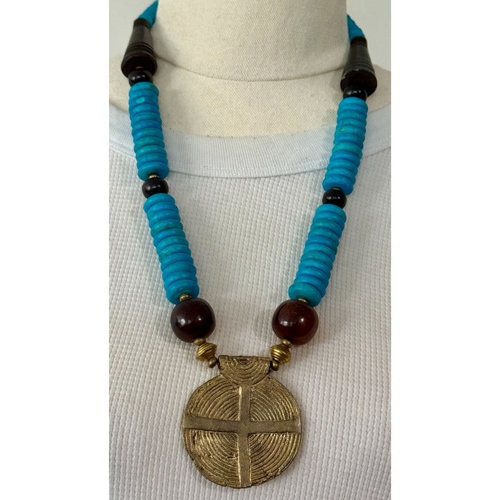 A smooth turquoise disk pairs with brushed brass for relaxed luxe - perfect for sunlit days and layered looks.